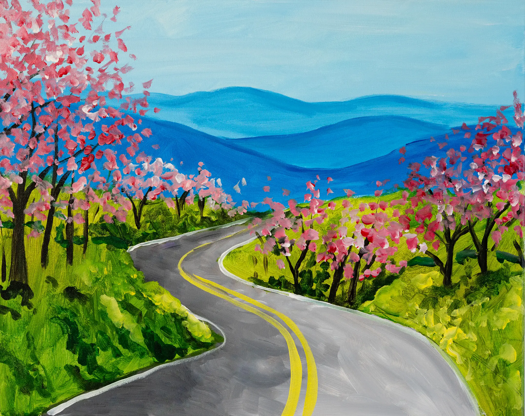 Unleash your creativity with us at Sweeten Creek Brewing on Sunday, March 29th, at 2:00 pm! No experience is needed. Our skilled instructors will guide you through each step, helping you recreate this fun landscape of the Blue Ridge Parkway! 🏔️🚗